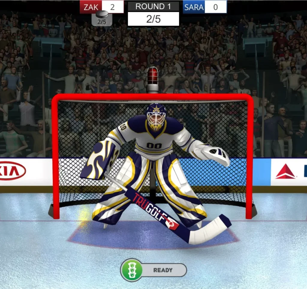 Skate onto the ice and transform your golf simulator into a jam-packed hockey rink. Take on four thrilling play modes- Goalie, Target, Blackout, and Long Shot. Ice-out the competition and land your slap-shot in the net, while dodging the opposing team’s players skating across your path.