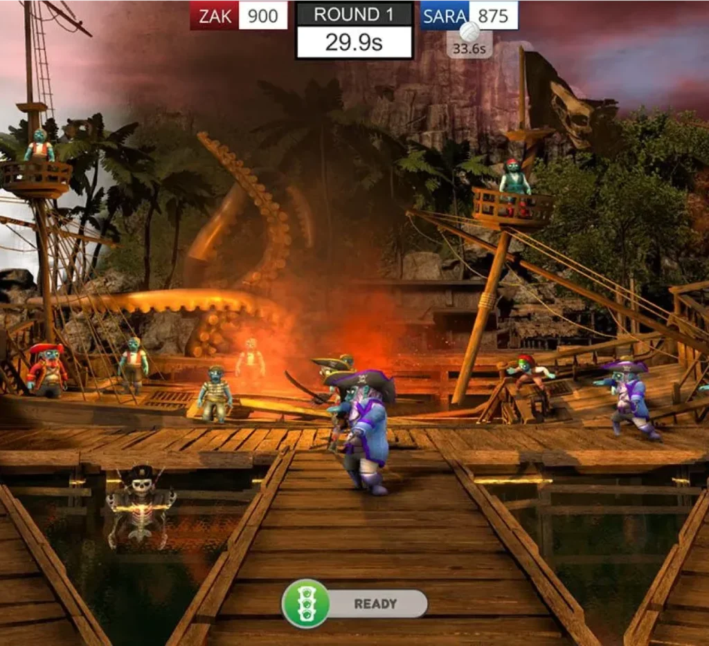 Fight to survive in TruGolf’s Zombie Dodgeball party game. Your journey starts with an exciting kid-friendly Ghost Hunt in a spooky graveyard. Next, face off against ferocious Frozen Zombies armed with ice and fireballs. And finally, protect your ship from Zombie Pirates during an epic sea battle! Three difficulty levels ensure you get just the right amount of thrills, regardless of age or skill level.